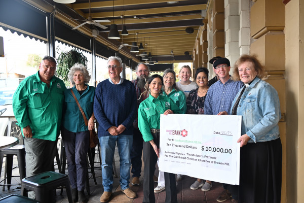 THE Combined Christian Church Group donated $10,000 to Landcare Broken Hill this week, to be put towards building an outdoor chapel at the Imperial Lakes Nature Reserve.
